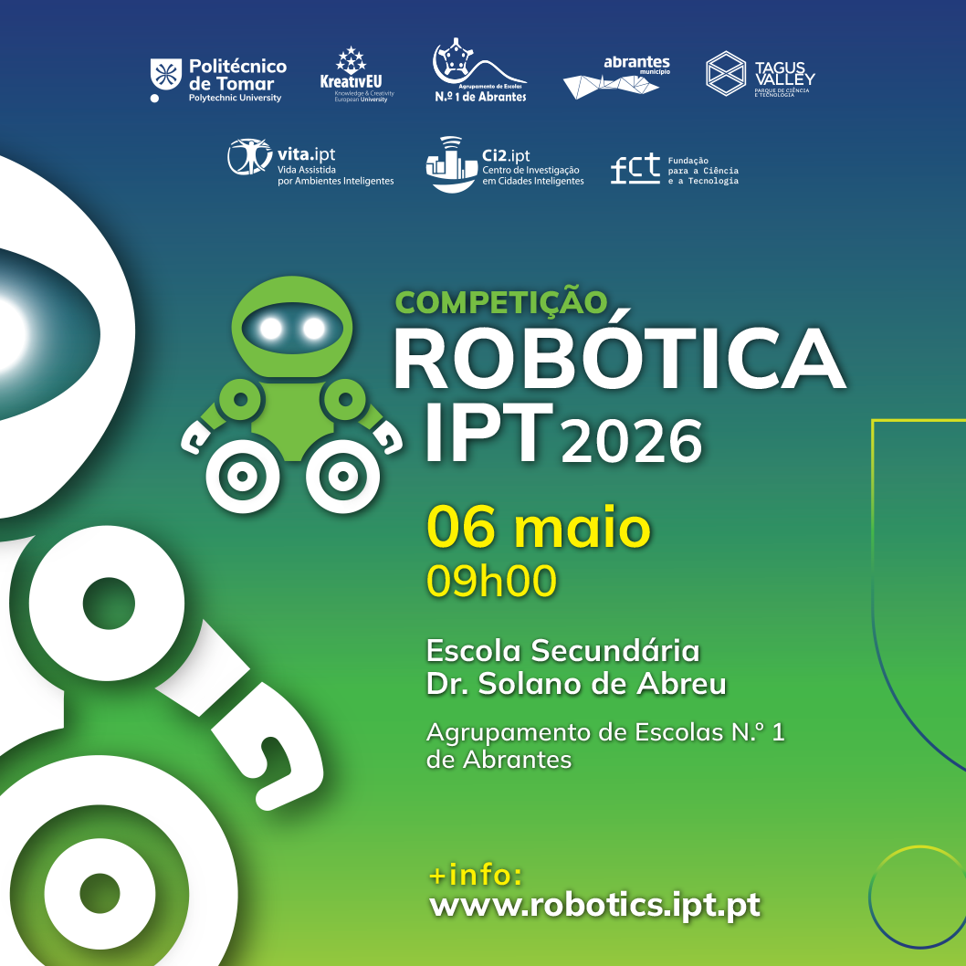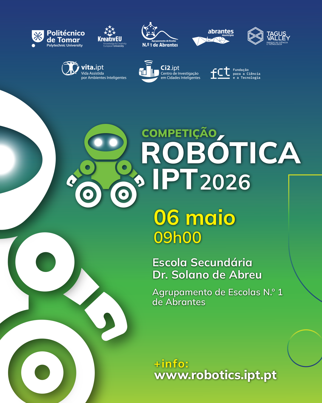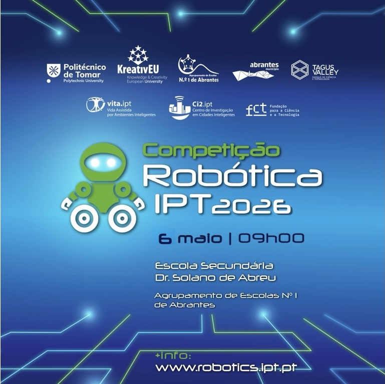 O Instituto Politécnico de Tomar vai realizar a Competição Robótica IPT 2025, no dia 6 de maio de 2026, na Escola Secundária Dr. Solano de Abreu do Agrupamento de Escolas Nº1 de Abrantes.
